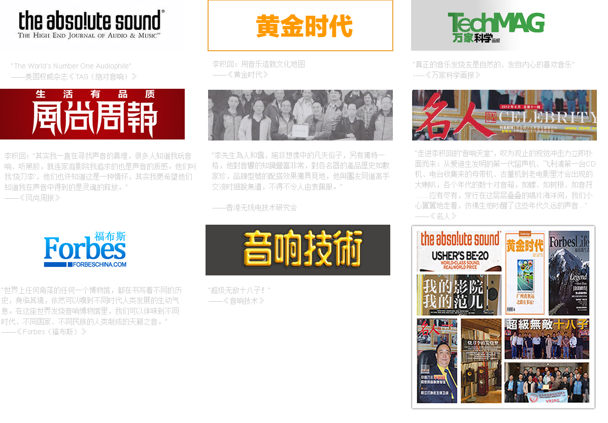 在這里,你可以領略到世界眾多經(jīng)典音響品牌的無限魅力,如ATC、B&W、JBL、Cello、Dynaudio、Wilson、westlake、EmmLabs、Genesis、PMC、B&O、Venture、FM Acoustics、Goldmund、HALCRO、Infinity、Jadis、Kharma……