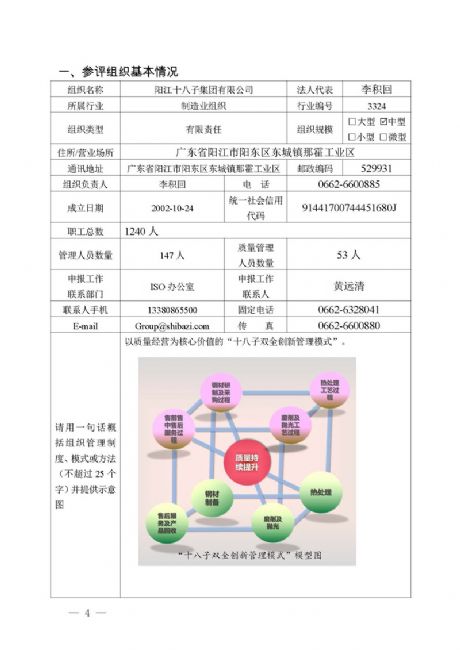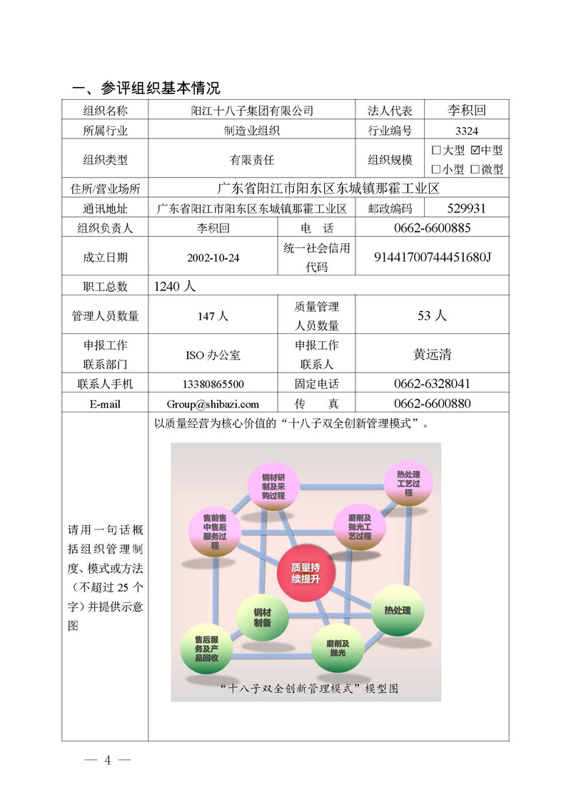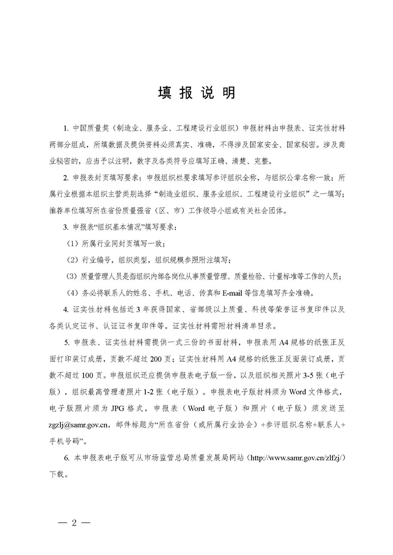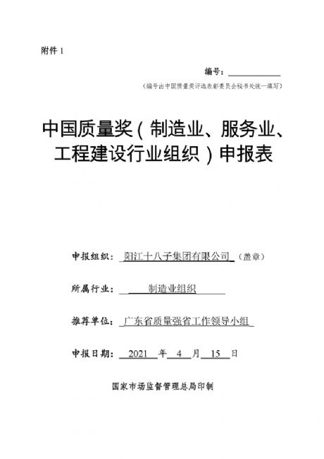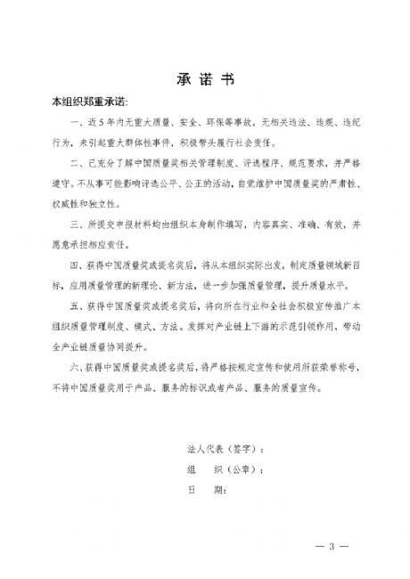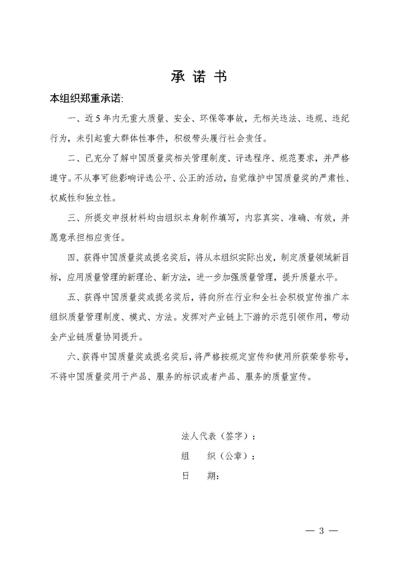 關于中國質量獎申報表公示